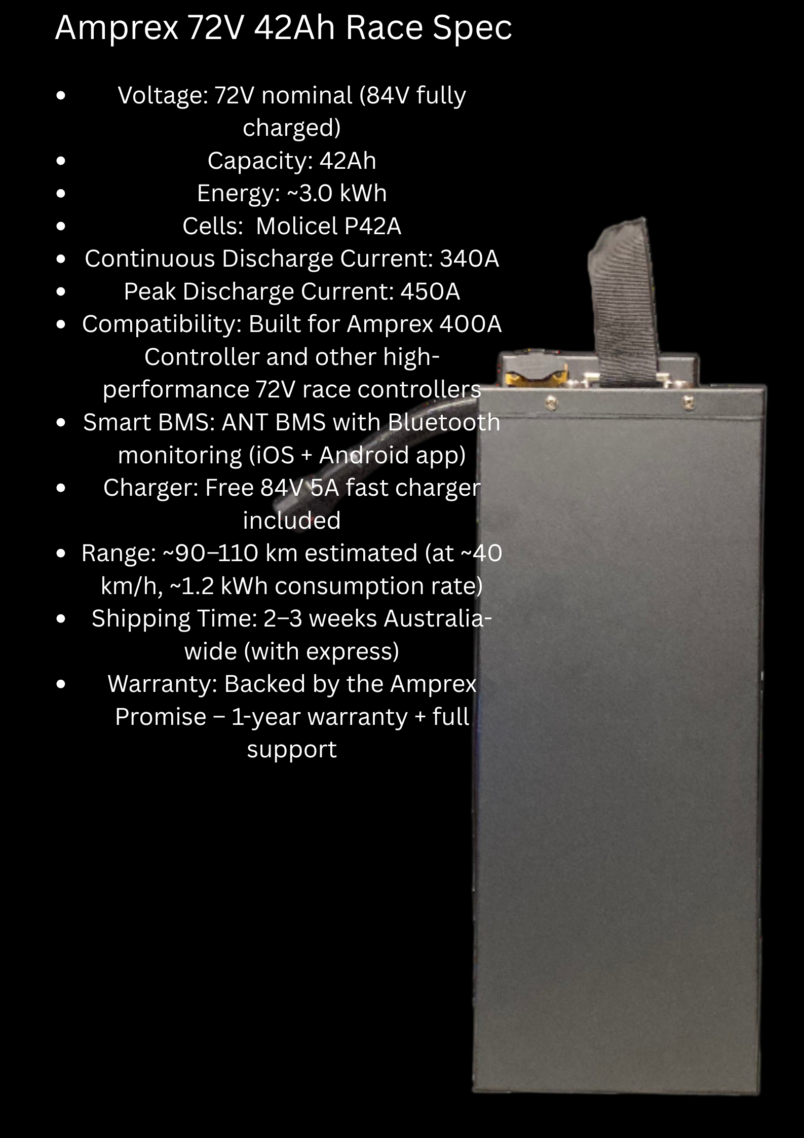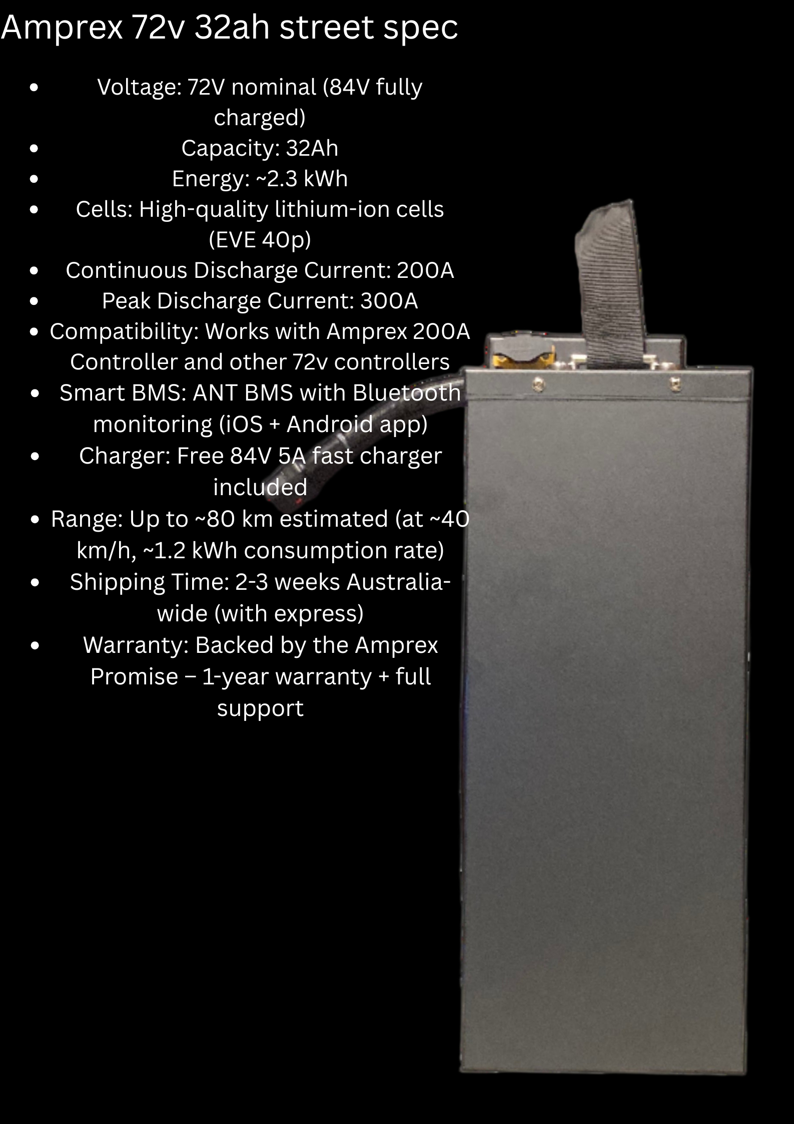 Unlock the full potential of your SurRon with our Amprex 200A Controller — the ultimate upgrade for both stock and high-performance builds. Designed to run seamlessly on 60V–72V batteries, it delivers up to 200A line current and 560A phase current for incredible torque and acceleration. With advanced features like flux weakening, fully tunable parameters, and adjustable power across RPM ranges, you have complete control over your ride. Almost every setting can be customized to match your style, whether you want more low-end torque or higher top speed. Starting at just $875 AUD.